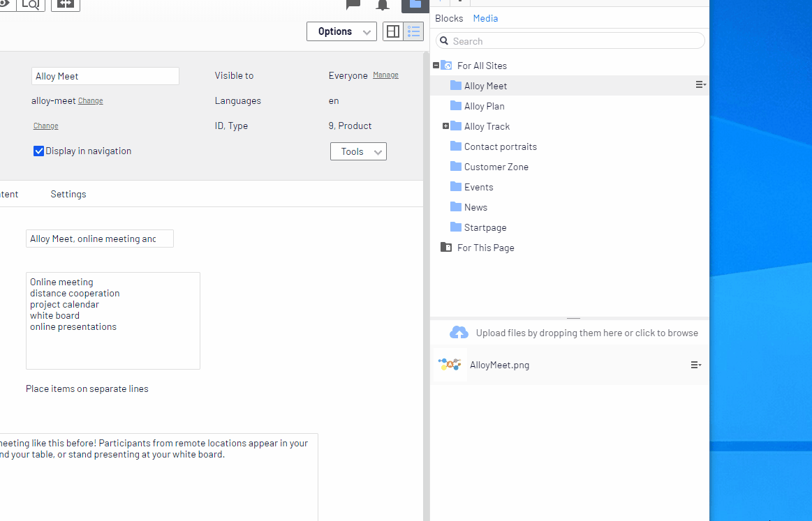 Når bilder legges inn i rike tekstfelt har det nå dukket opp en knapp «Go to media». Hvis du holder musepekeren over knappen ser du hvor bildet ligger lagret, og hvis du klikker på knappen kommer du direkte til bildet. Veldig nyttig når bilder ligger lagret under globale filer, og du ikke husker hvor.