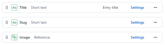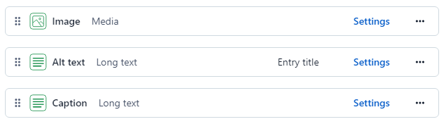 The 'image' field above is a reference to another content type 'image', which looks like this: