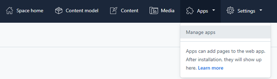 Now we can go ahead and Save our newly created app. To verify this we can go to our space and select Apps -> Manage apps from the top menu.