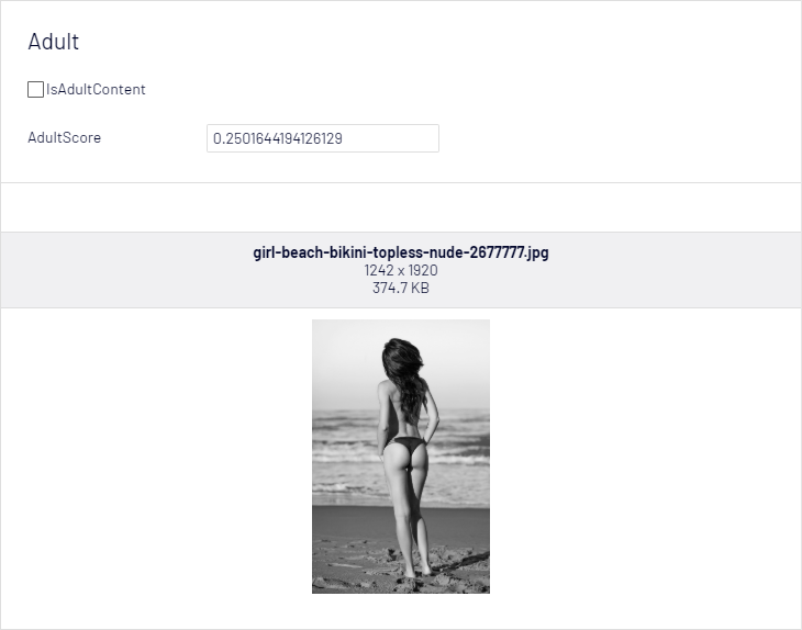 This attribute will try to identify adult content. Adult images are defined as those which are explicitly sexual in nature and often depict nudity and sexual acts.