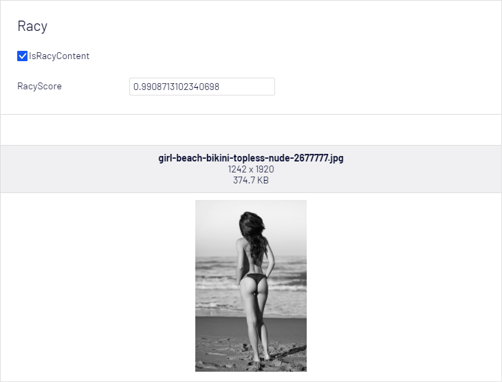 This attribute will try to identify racy content. Racy images are defined as images that are sexually suggestive in nature and often contain less sexually explicit content than images tagged as Adult.