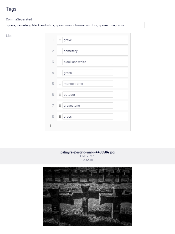 A simple example. Adding the AnalyzeImageForDescription-attribute to a property will get a description/caption that describes the image. This may be used as an alt text for images. The property gets its value when the image is uploaded. The value may then be checked, and (if necessary) adjusted by the editor.