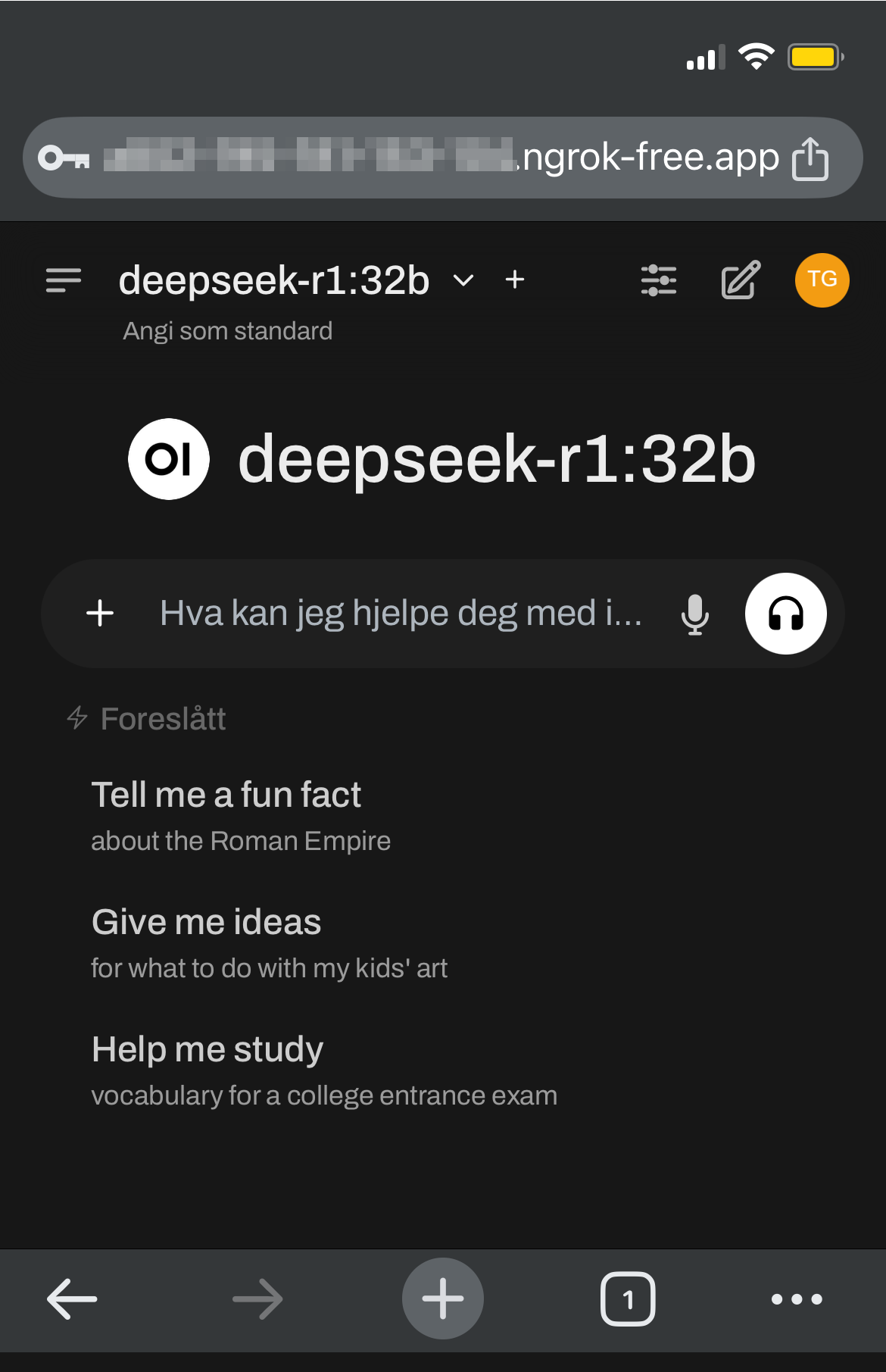 En annen fordel med å kjøre språkmodellen i nettleseren, er at du kan bruke en tjeneste som ngrok for å gjøre den tilgjengelig over internett, slik at du f.eks. kan bruke den fra mobiltelefonen.