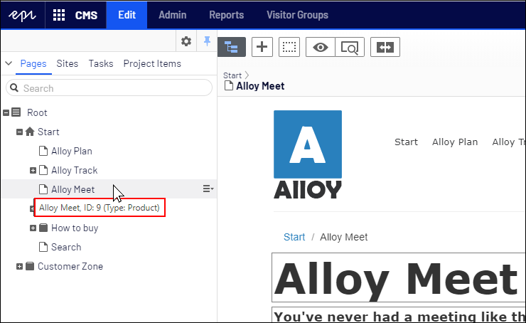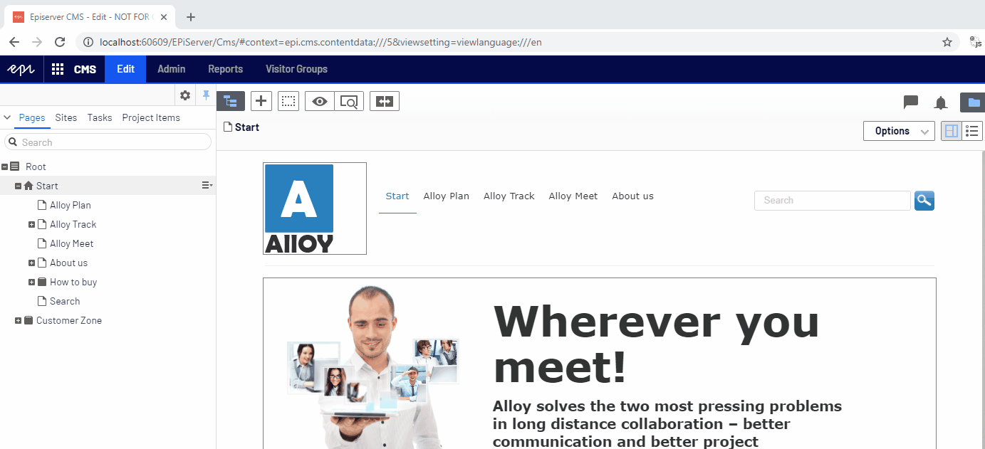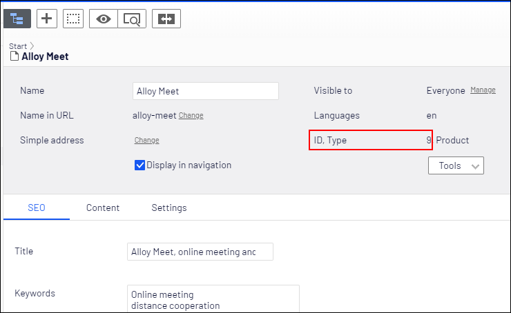 If you want to edit page with content id 9, like we identified above you may replace the content id in the URL with 9 like this. So, that's another way to find the content id - simply look at the URL.