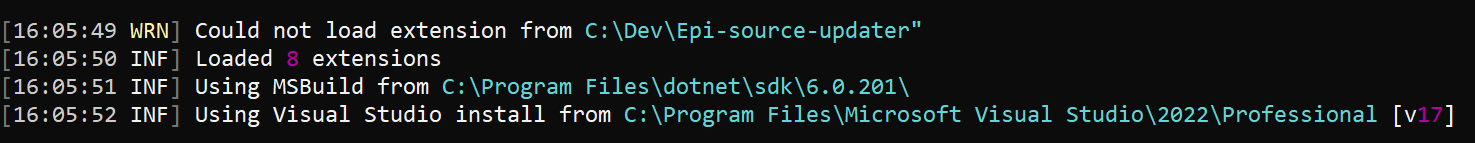 --extension "C:\Dev\Epi-source-updater"After a second or two, this was what filled my screen 😱