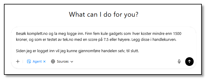 - Jeg starter med å be ChatGPT bruke agent-modus.