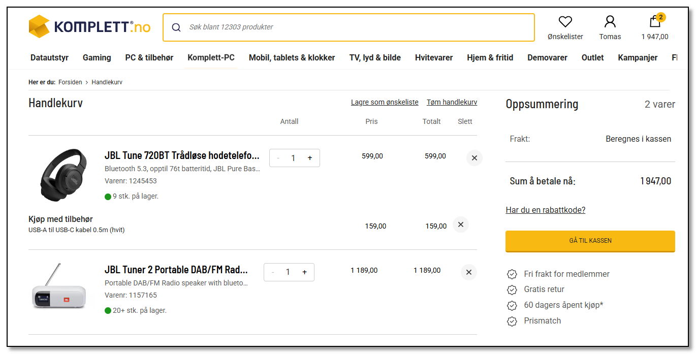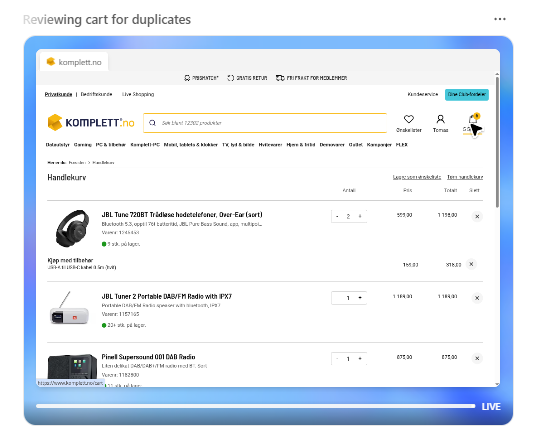 - La agenten gjøre seg ferdig. I dette tilfellet oppdaget agenten at den hadde lagt til samme par hodetelefoner to ganger, og derfor hadde totalt seks produkter i handlekurven. Dette oppdaget den selv, og ryddet opp.