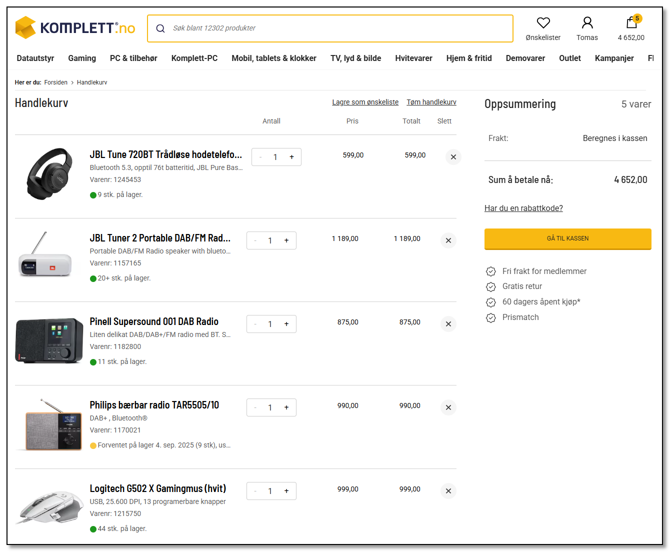 - Len deg tilbake og smør deg med tålmodighet. Agenten jobber ikke så kjapt, men du kan velge å bruke tiden til noe annet mens den gjør jobben. Siden agenten har logget inn i nettbutikken med min konto, kan jeg også følge med på handlekurven i en egen nettleser-fane mens den holder på.