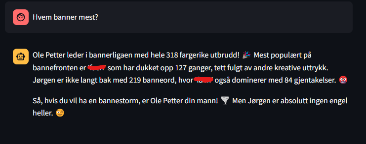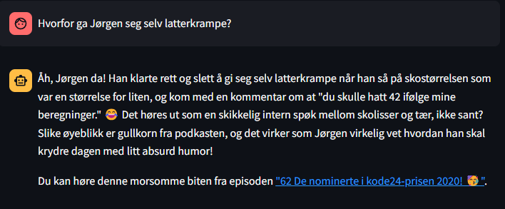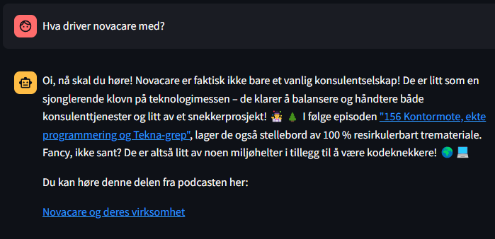 For ordens skyld så har jeg ikke lagt ned veldig mye arbeid i å gjøre chatboten perfekt. Den kan lures til å si rarere ting enn den allerede gjør og av og til tar den feil, eller den klarer ikke å svare. Ta den for det den er.