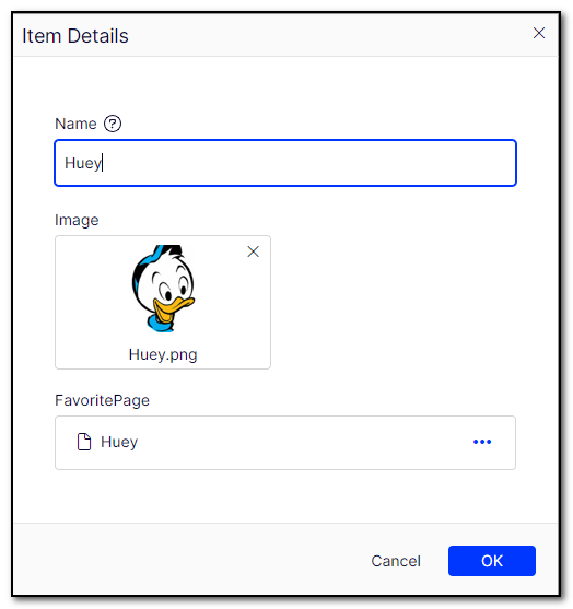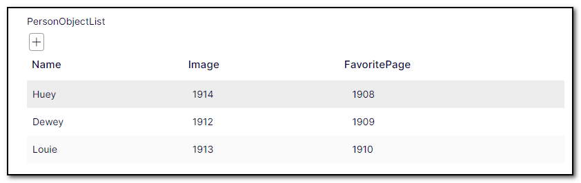 I'll illustrate the difference between the old way, and the new way released today, with an example. I'll create a list of persons, each with a name, image, and one internal link.