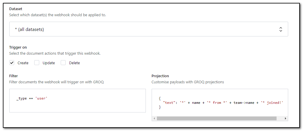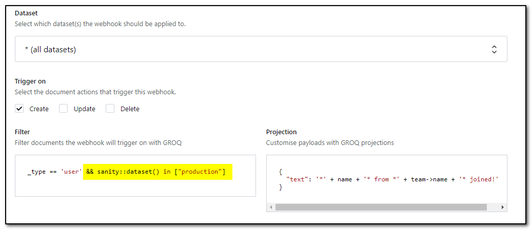 Sanity recently launched their GROQ-powered webhooks that I wrote about, and they are really powerful! There is even a guide that explains projections, and one that explains filters.