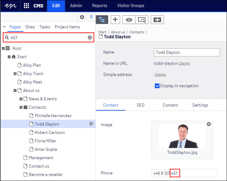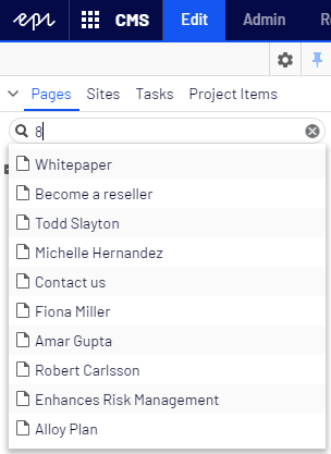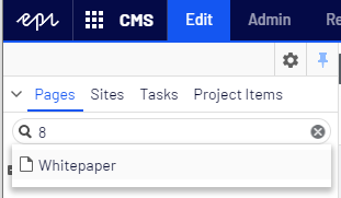 In Episerver CMS, the search bar above the page tree in edit mode makes it easy to locate content without browsing the page tree.