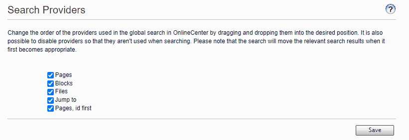 Then, I drag and drop my new search provider to the top of the list. It is hardly intuitive, but that is how it works! Remember to hit save.