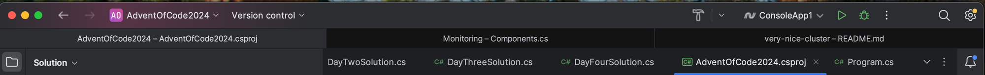 - Prefer tabs when opening documents: Set to Always. (Rider and vscode opens solutions/folders in the same window)