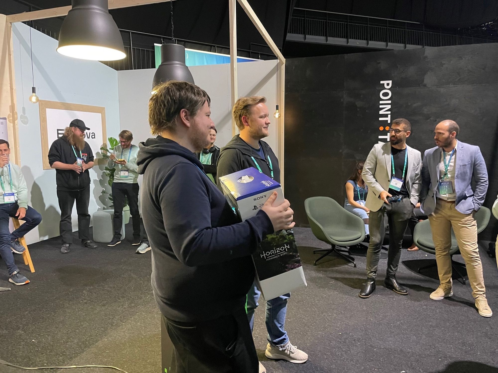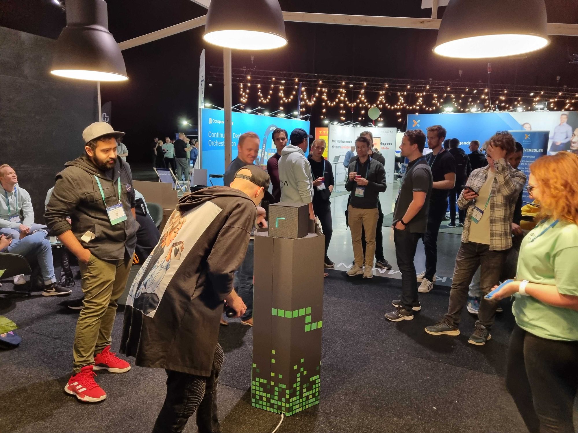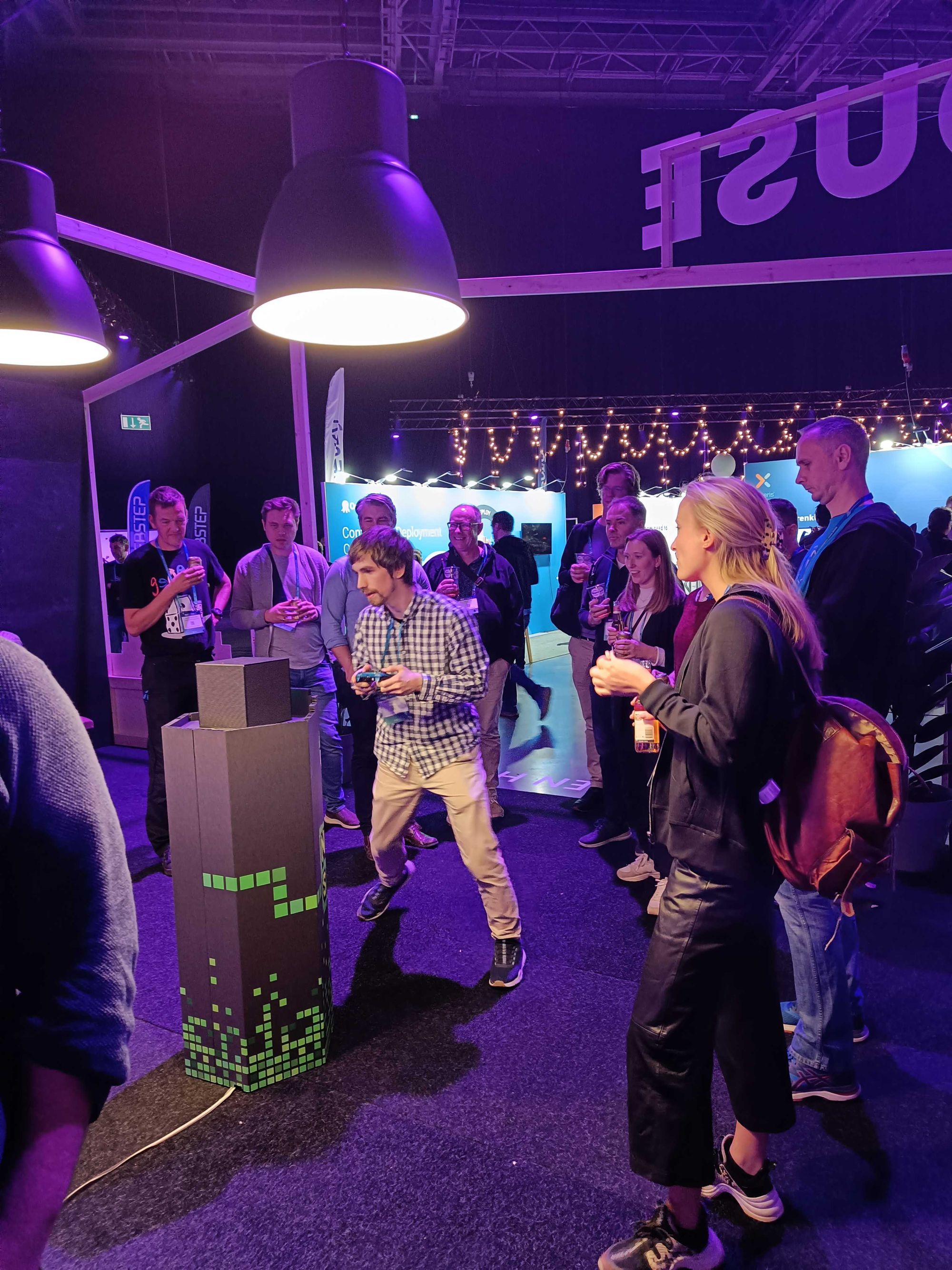 Now I could finally enjoy the conference! After coming back from the first round of presentations, I was blown away to see all of the people that wanted to play! All the stand members were on their feet registering scores and talking to guests. The cube really worked as intended. I also need to disclose that the grand prize for the top score was a PlayStation 5. That might also be a reason for the big crowd.