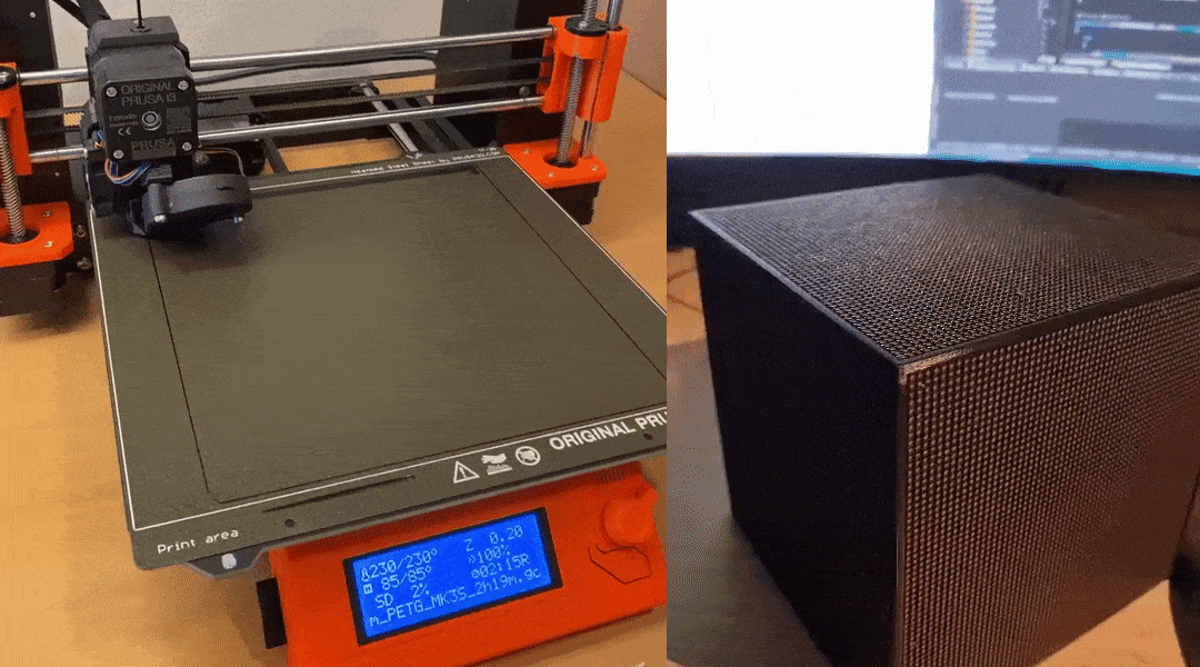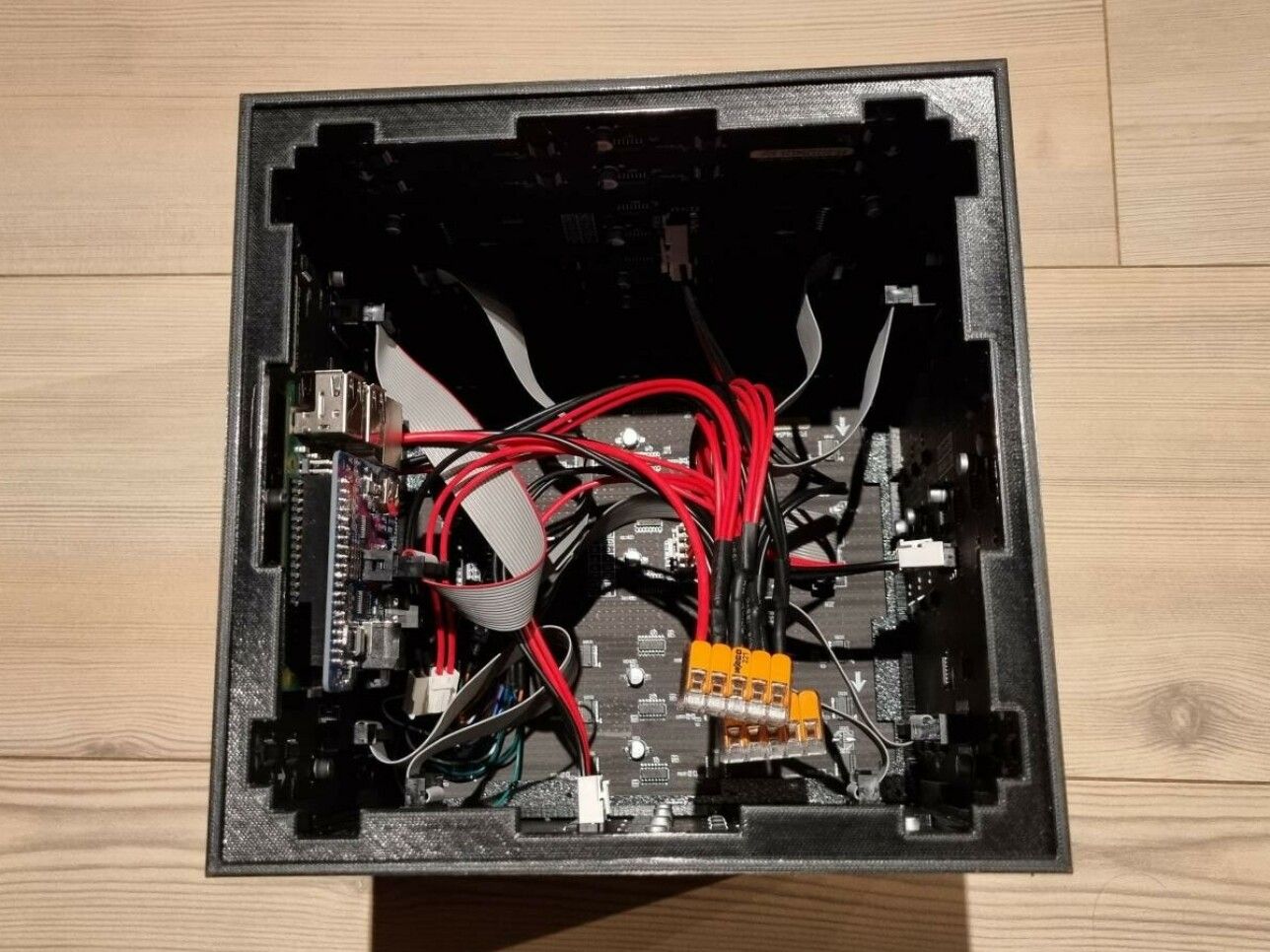 The microcomputer inside the cube is a Raspberry Pi 3B+.
