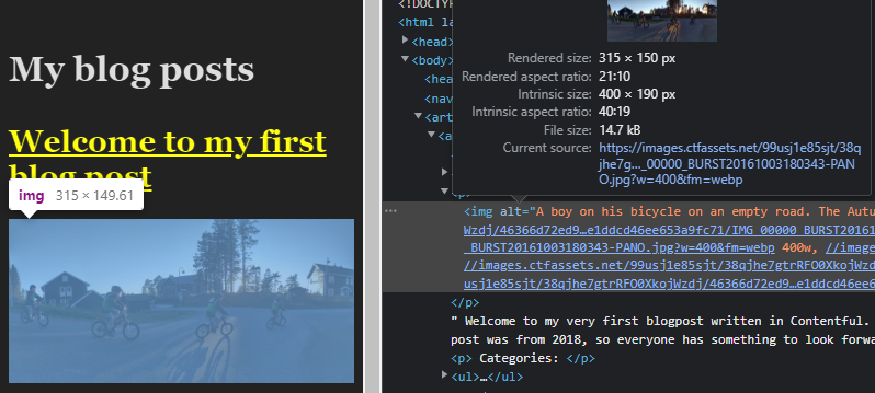 w=400to define the width to scale down to. If I don't define anh=(height) parameter, the height to width ratio is the same as the original.fm=webpto tell Contentful to convert the image to WEBP.
