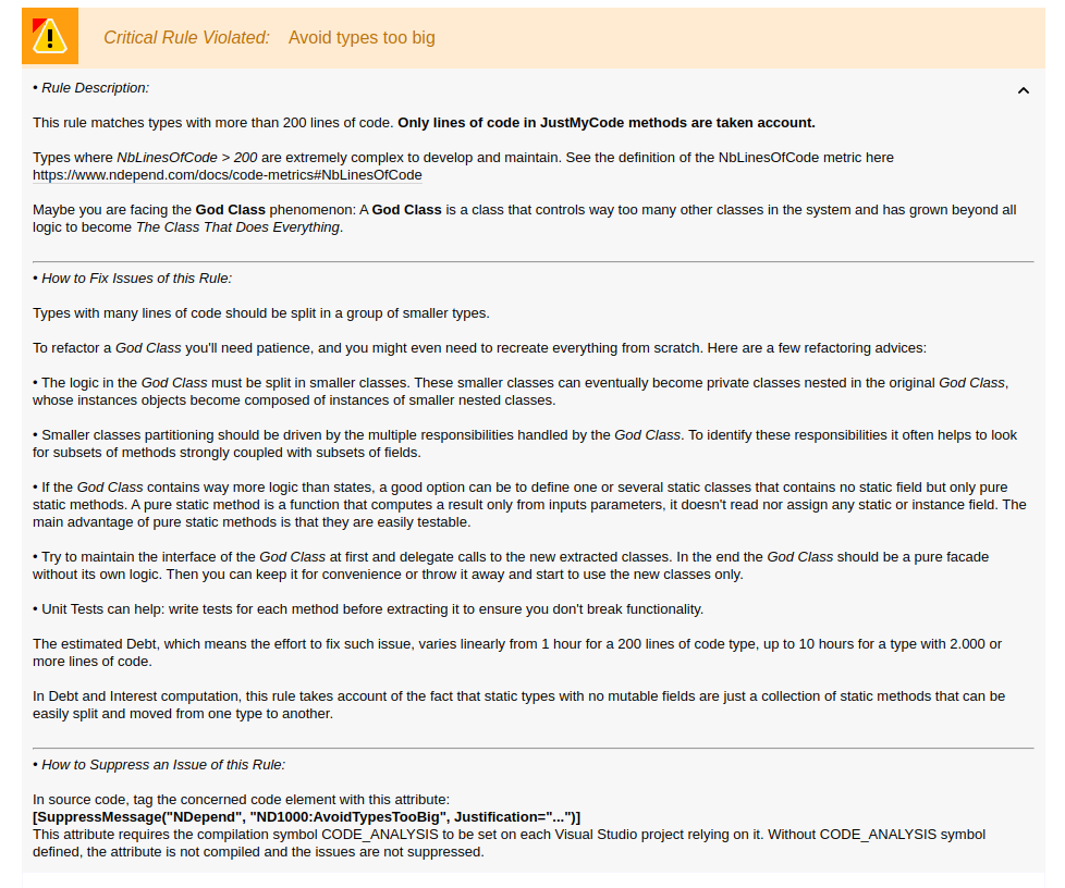 - Avoid types being too big: This rule matches types with more than 200 lines of code.