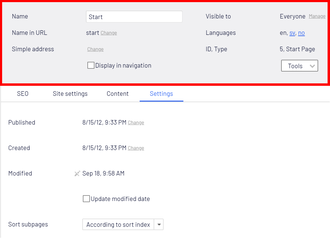 In Episerver CMS, you are probably familiar with the fundamental concept of grouping properties into tabs. You may place your own properties in the existing tabs (Content, Settings etc) or create your own tabs with descriptive names.